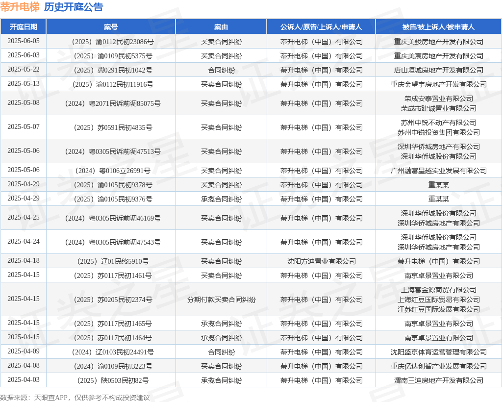 本站消息,根据天眼查APP显示,近日公布了一则蒂升电梯(中国)有限公司作为原告/上诉人的开庭公告,详细内容如下: